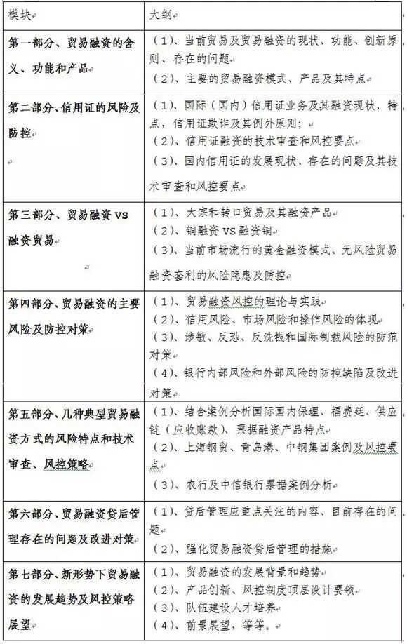 贸易融资可资借鉴的经典案例及其经验教训有哪些?等等,都是银行贸易融资客户经理、产品经理、评级授信审批人员、风险经理等在业务营销、评级授信、业务办理和风险防控过程中,应当熟悉并加以灵活运用的工作宝典。为此,本课程将从以下七大方面对这些问题做深入、详细地剖析和解读。