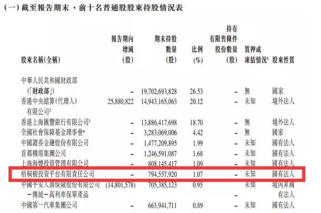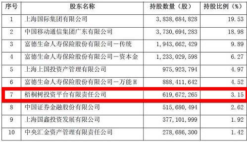 除了交通银行,梧桐树投资平台也是浦发银行前十大股东。