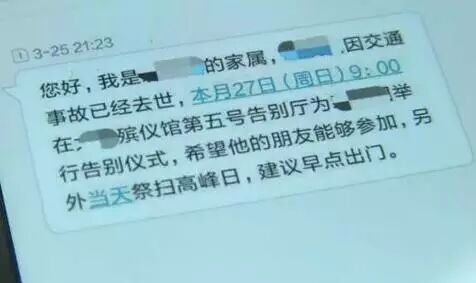 几天前,南京市民李先生收到了一条信息,内容是邀请他参加王某的葬礼,而巧合的是,李先生恰好是有一个许久不联系的朋友王某。 南京市公安局鼓楼分局民警介绍,李先生因为清明节期间不在南京,没有办法去参加告别仪式,就说转个份子钱表示慰问。很快,对方提供了一个银行账号,李先生转了2000元过去。随后,李先生向另一位朋友提到王某的事情,可这位朋友说,刚看到王某在更新朋友圈。这时,李先生才意识到被骗了,于是立即报警求助。