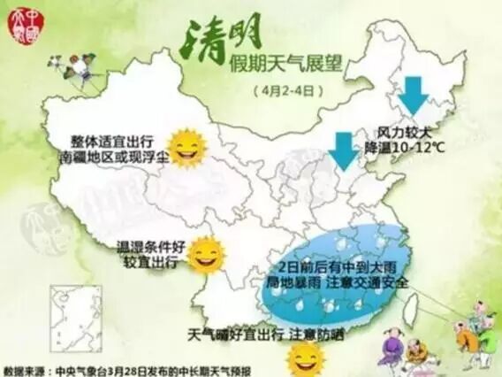 另据中央气象台预报,今年清明节期间影响我国的冷空气活动频繁,江南、华南中北部等地降雨较多,大部分地区降雨量较常年偏多2-5成,对交通出行及安全带来不利影响,易造成路面行驶车辆因道路湿滑发生侧翻、翻坠等事故,农村地区、山区路段可能发生山体滑坡、泥石流,影响交通安全。