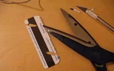 快刀斩乱麻!一刀两段!将银行卡切成两半。