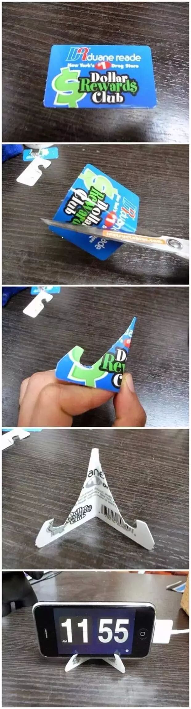 趁着孩子睡觉的时候想追电视剧,可是宝宝却要抱在手里才肯睡觉怎么办?很简单啊!用会员卡制作一个简易的手机支架吧!