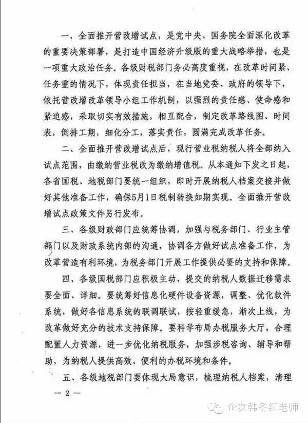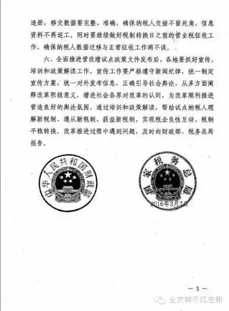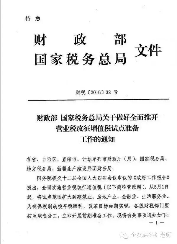 正式下文了:财税[2016]32号《关于做好全面推开营改增试点准备工作的通知》