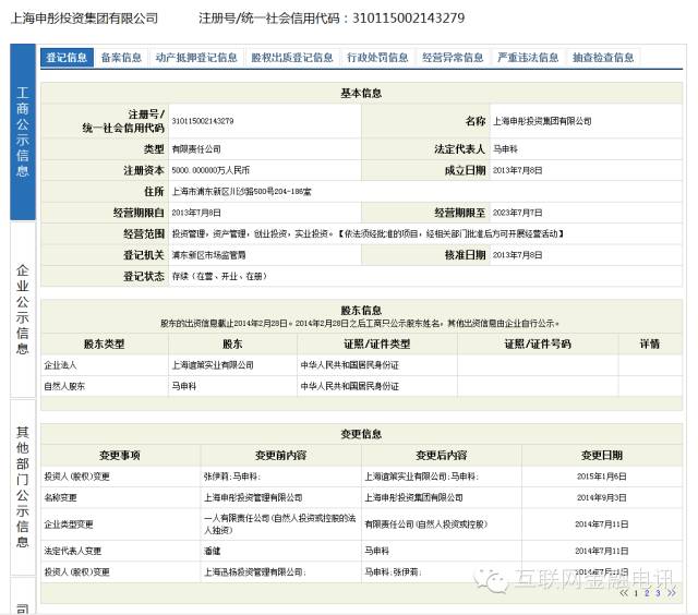 而上海申彤投资集团有限公司的股东为马申科和上海谊策实业有限公司,上海谊策实业有限公司则是马申科控制的另一家公司,法人皆为马申科。