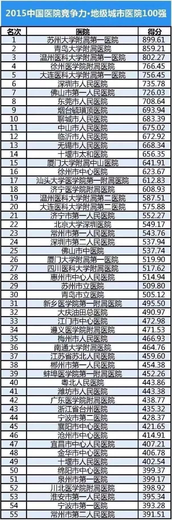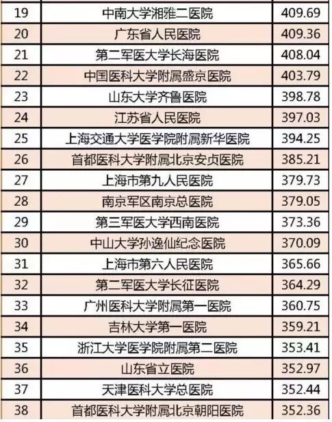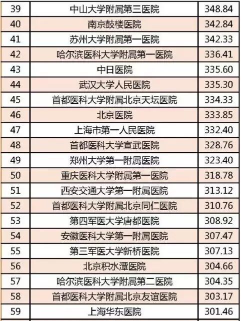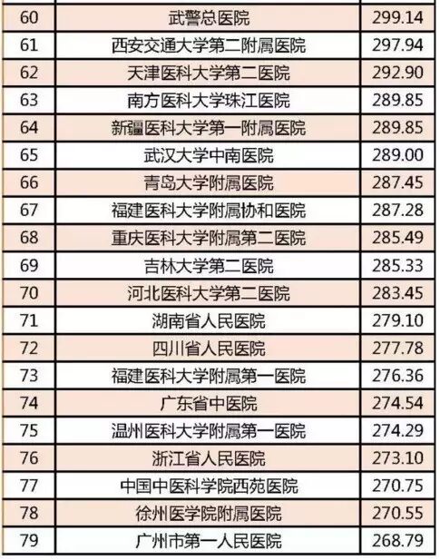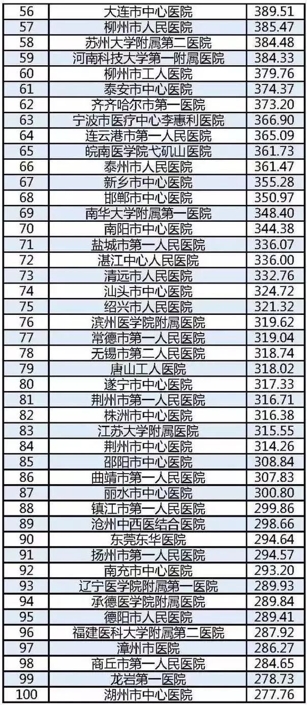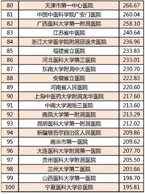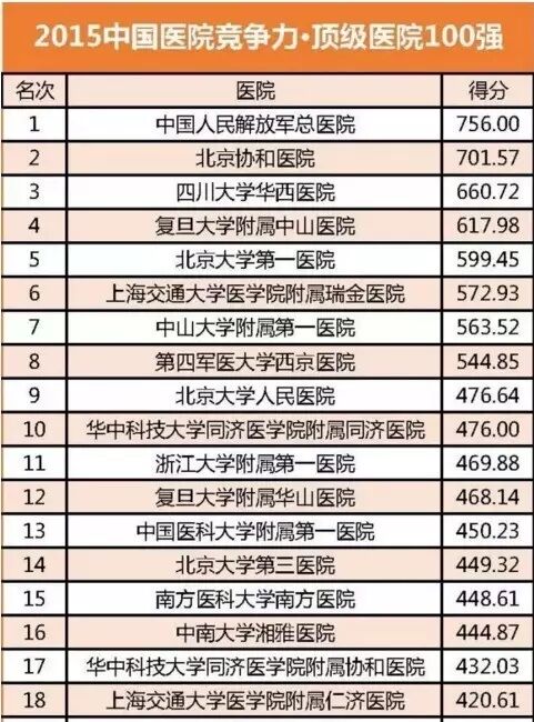 北京集中了北京大学、清华大学、北京协和医学院、首都医科大学、中国中医科学院、北京中医药大学等著名院校,医疗资源最丰富;其次是上海,上海拥有复旦大学、上海交通大学、同济大学、第二军医大学、上海中医药大学等著名院校;其三是广州,广州拥有中山大学、南方医科大学、暨南大学、广州医科大学、广州中医药大学等。此外,顶级医院绝大部分来自直辖市、省会城市,共有95家,其余5家来自人口密集的地级市(青岛、苏州、徐州、大连、温州,主要是因为这些医院都是医学院的直属附属医院)。