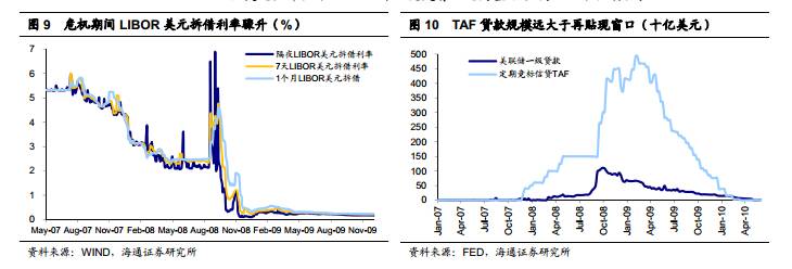 原本,处于危机下的金融机构可以向央行再贴现获取资金,但由于再贴现会向市场传达“经营陷入困境”的不良信息,当时美国的金融机构不愿意通过再贴现融资。而 TAF 与再贴现不同,美联储不对外披露 TAF 贷款机构名单,金融机构没有了“贷款向市场传递不良信息”的后顾之忧。同时,由于 TAF 每次拍卖的贷款规模均事先确定,故通过 TAF 贷款增加的基础货币供给完全在美联储的掌握之中,减少了货币投放的不确定性。