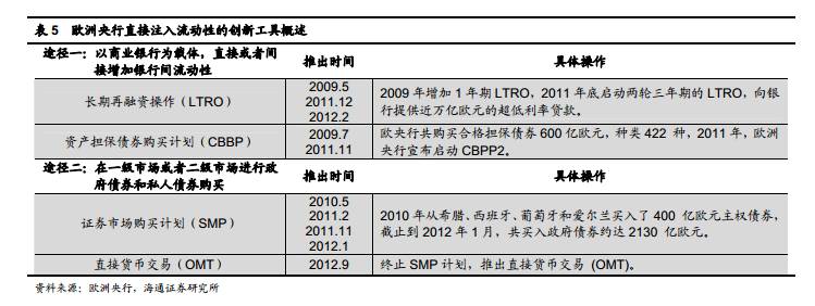 3)直接货币交易( OMT)则是欧央行的特色,通过向重债国购买主权债务然后出售