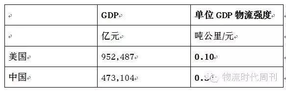 数据显示,2014年我国第一、二产业占GDP比重为51.9%,“物流总费用占GDP比例”为16.6%;1981年美国第一、二产业占GDP比重为42.5%,“物流总费用占GDP比例”是16.2%;2011年美国第一、二产业占GDP比重为24.2%,“物流总费用占GDP比例”是8.5%。