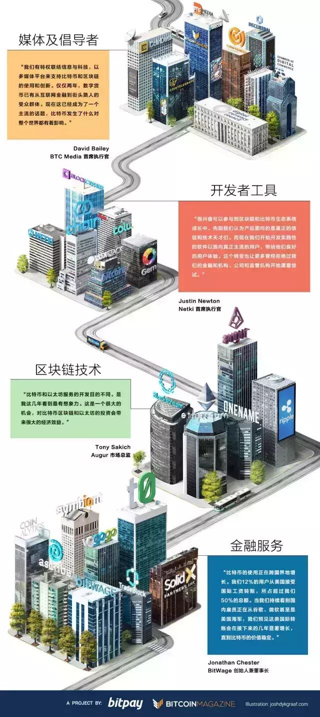 从化名创立者中本聪最初的提议开始,比特币完成了一次艰苦卓绝的长征。从被锐意创新的技术专家和自由论者接受开始,这项科技就一直在不断发展壮大,并且从最开始的姿态向更广的研究范围和世界金融领域的运用转变。就跟早期的尖端科技如因特网一样,比特币仍然任重道远。比特币必须应对新闻媒体的无情抨击,因为它和丝路以及毒品的联系。当比特币交易所Mt.Gox分崩离析的时候,那些过早接纳比特币的投资者蒙受了数以百万计的巨大损失。很多人预言:“比特币已死。”但当比特币即将迎来自己七岁生日的时候,我们发现事情有所转机。比特币正在转变为一种令人好奇惊叹的科技,而且其理念流传甚广。业界已经议论过跨境支付、机器间的电子交易、智能联系人、微交易和股票结算的可能性,并且付诸实施。这个领域已经百无禁忌,问题不断地被发现和解决。从早期使用笔记本电脑“挖矿”,到现在,比特币矿工已经建立起工业化的数据中心,使用成百上千台高速的特制机器来完成这项工作。2014年1月,比特币的全网算力仅为1,000万GH/s,而现在能达到5,040万GH/s。再加上新的“挖矿”机器不断被生产销售,这个数字还会继续攀升。在相同的时期内,每天大约有5万次比特币交易。而现在已经达到17万次每天。这其中很大一部分增长都归功于接受比特币支付的商家数量的增加。在2014年,大约有6.5万商家接受比特币付款。到了2015年的年中时,已经有10万家了,增长了50%。美国购物网站TigerDirect见证了这个变化——所有使用比特币的买家中,46%是新客户。进一步讲,使用比特币付款的订单增长了30%。2015年8月,比特币支付服务公司BitPay的交易记录突破了7万。由此可见,比特币作为一种交易工具的影响力正在扩大。比特币作为资产分类来讲也在蓬勃发展。在2015年内大部分时间里,其价格在200到300美元内不断波动。然而在刚过去的几周里,比特币价格大幅上升,让人联想到前几年的盛景。从2013年1月到2014年1月间,从13.41美元飙升到808.05美元,在2013年12月4日达到峰值1147.25美元。就在一个月以前,也就是2013年1月4日,其价格仅为225.20美元。比特币的“泡沫”正在膨胀。另一方面,比特币的最高市值已从历史最高140亿美元下降到本文发布时的约50亿美元。虽然如此,但风投资金源源不断涌入该领域。2013年,比特币企业一共融资9,380万美元。2014年,这个数字到达3.147亿美元。在仅剩两个月的今年,比特币和区块链公司已经融资超过10亿美元。规章制度也在不断改变。之前,就曾有政客因为比特币被用于地下交易市场丝路(Silk Road),而公开反对比特币。而现在,一些诸如加密货币研究和教育机构货币中心(Coin Center)和美国电子商会(Chamber of Digital Commerce)的组织敦促政客和监管机构重新定义比特币的地位,并帮助比特币取得世界范围内的影响力。纽约在这一方面一马当先,近期发放了比特币执照(BitLicense),规范业界行为。欧盟也不甘示弱,近期决定免除比特币的增值税,向比特币生态圈的参与者传递出了清晰的信号。最后,区块链公司的下一阶段也会继续增长。一个“去中心化预测市场”公司Augur宣布其在众筹平台上筹集到了510万美元。而下一代智能合约和去中心化应用平台以太坊(Ethereum)也在众筹平台上筹集到了1,840万美元。据估计,完全去中心化的P2P电商网站公开市场(OpenBazaar)会在接下来数月内投入运营。如上图所示,许多比特币业界的领头羊们讨论了保持比特币增长的方法以及未来的发展方向。比特币不再被边缘化,它现在无处不在。不管对于矿工、支付服务商、比特币钱包公司或者是开发工具来说,现在的情况简单明了:比特币正在不断成长。并且其雄心壮志丝毫不逊于以前的伟大科技。