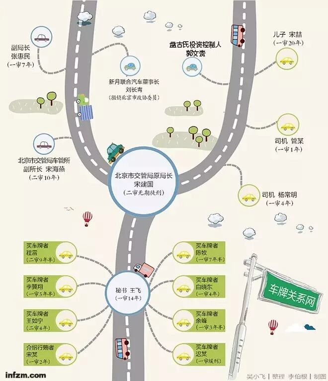 甚至,王飞的中专同学,现年43岁的北京市交管局车管所京朝分所警长宋某,因介绍秦某向王飞行贿8万元,违规办理2副车牌,一审被北京市一中院判处犯介绍贿赂罪,处有期徒刑二年。
