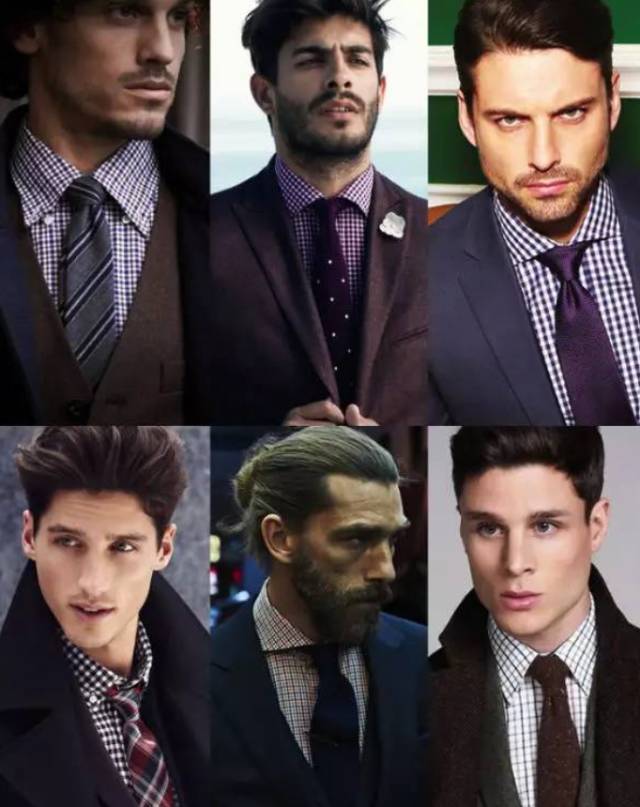 格子衬衫:单色毛呢、宽版斜纹领带