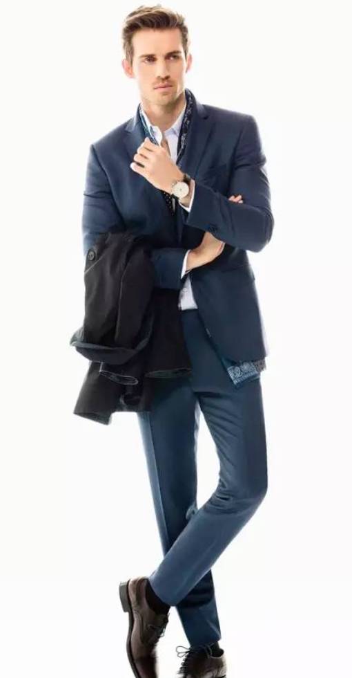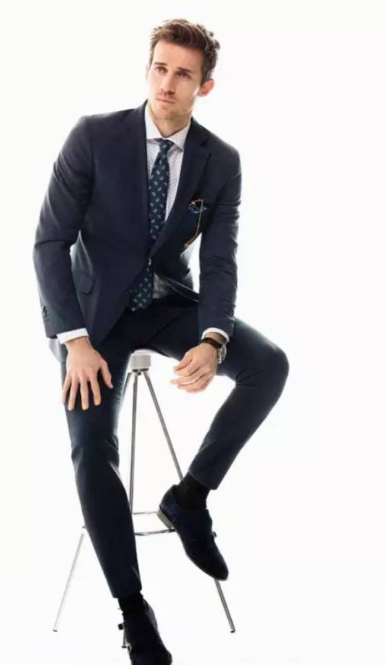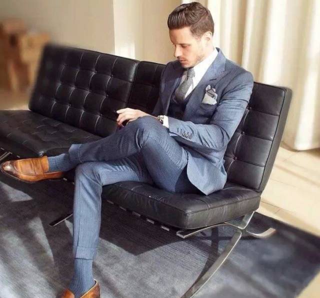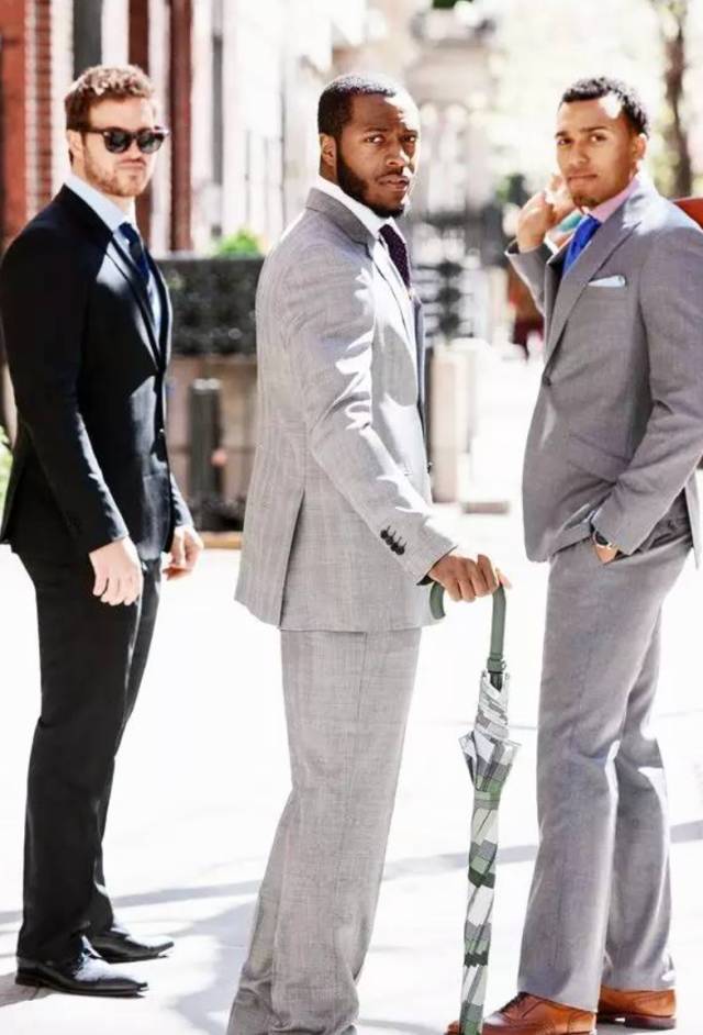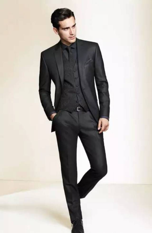 西装要有黑色、灰色、蓝色三种,这是最安全也最能衬托男性成熟魅力的颜色。