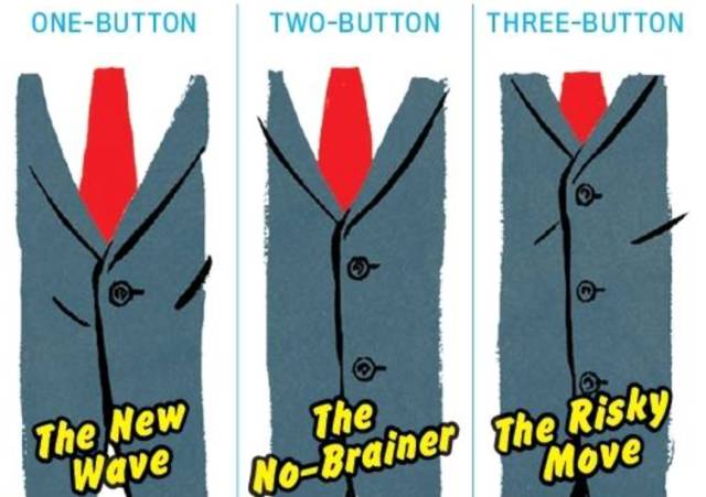 常见的西装通常都是两扣或三扣的款式,不论是两扣还是三扣的西装,无论何时请把第一颗扣子扣上,最后一颗则是永远都不要扣。三扣西装的第二颗扣子则是是在做简报和正式场合时扣上,其余时间则不扣。