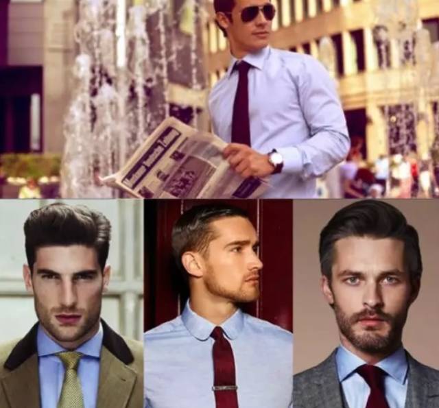 要点:不能太短,一般领带长度应是领带头盖住皮带扣;领带颜色一定要比衬衫深。