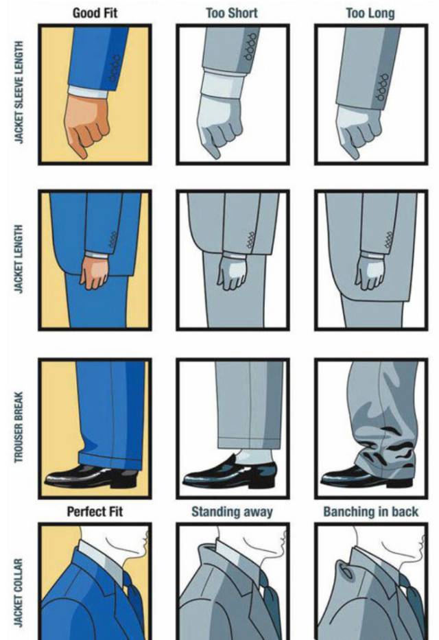 合身,是西装最重要的决定因素。如果不合身,即使你穿了再干净再高级的衣服在别人看来也是一团糟。合身,即使不时尚,也是干净利落的呈现自己的气质,而且它将影响别人对于你的第一印象,请千万注意。