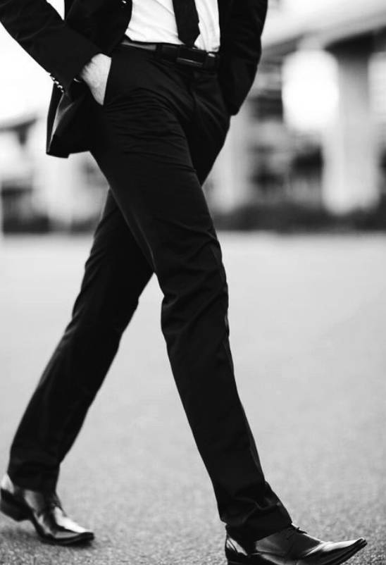 裤子的下摆是西装整体的重点,所以当试穿时,先确认一下站立时西装裤的下摆有没有刚好落在皮鞋的上方,如果没有反而在太高或是像一团烂泥的趴在你的皮鞋上,记得请他们帮你修改一下。
