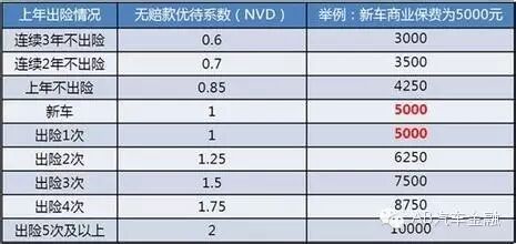 上表可以看出,出险2次的保费系数上浮25%、出险3次的上浮50%、出险4次的上浮75%、出险5次的保费翻倍! 一年内无出过险的打8.5折,两年没出过险打7折,三年没出过险可以打6折。