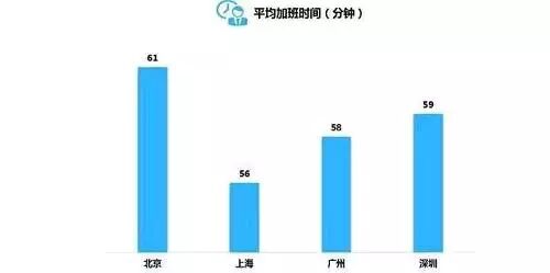 无论能不能改变世界,初入职场的年轻人难免披星戴月地奔波。以晚7点后计算,四个城市平均加班时间差异不大,都在一个小时左右,北京时间最长为61分钟。