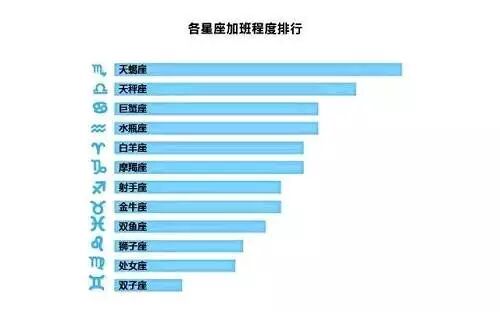 按照星座来看,天蝎座加班最严重,其次是天秤座、水瓶座,双子座加班程度最弱。