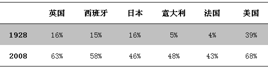 注:1928年美国数值较高反映了西进运动中的贷款需求