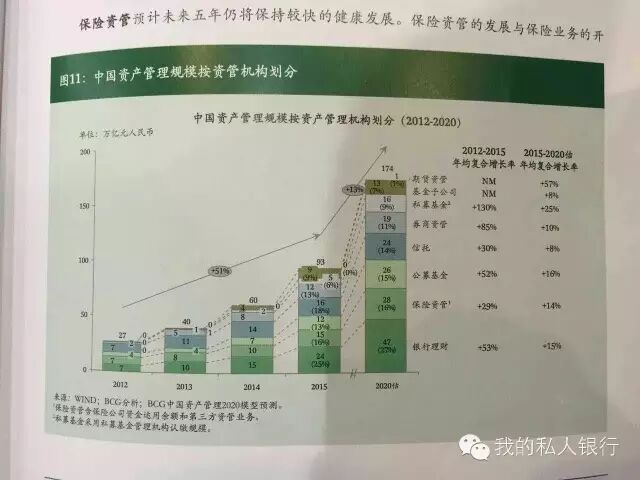基于国外资管行业发展和中国未来经济、人口、财富及行业变迁等多项因素,BCG预测,资管行业仍将持续增长,但增势有所放缓,2015至2020年均复合增速可达13%。