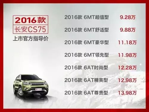 3月16日,长城汽车官方宣布,2016款哈弗H6直接杀入8万元区间,降价幅度最高达3万元。紧随其后,长安汽车2016款CS75上市,官方指导价为9.28万-15.78万元,起步价降了1.6万元,首次进入10万元以内。