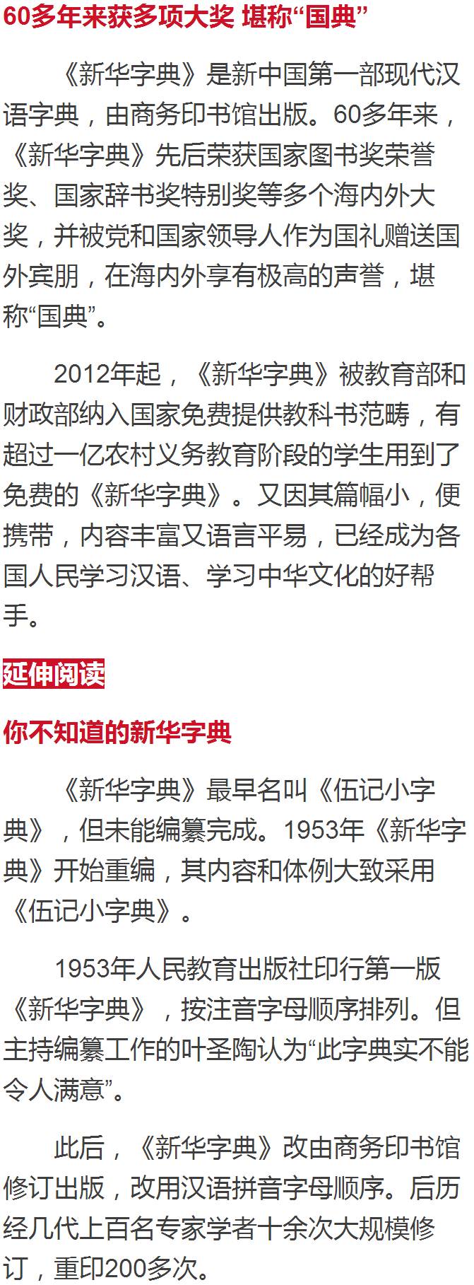 日前,《新华字典》被吉尼斯世界纪录官方确认,是世界“最受欢迎的字典”和“最畅销的书(定期修订)”。