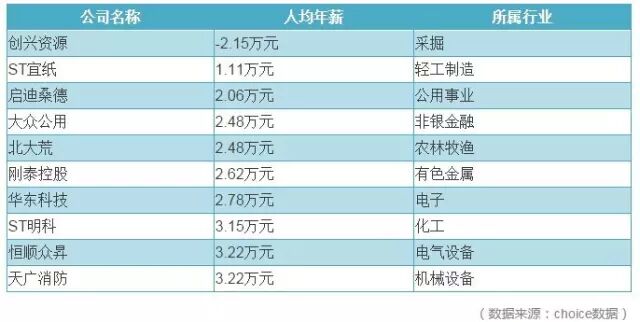 其实,在A股上市公司中,还有一些企业比证券业还要赚钱。也有一些企业连工资都发不出,最大方的公司人均薪酬296.07万元,最低的人均薪酬-2.15万元……(负数都出来了,这难道是要倒贴)