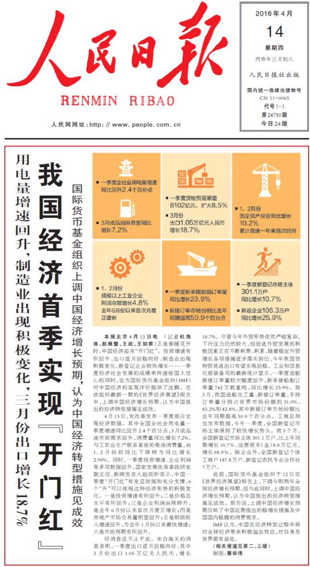 值得注意的是,12日晚间国际货币基金组织(IMF)公布的最新的《世界经济展望》尽管警告了全球经济面临增长的风险,却上调了中国今明两年的经济增速预期至6.5%和6.2%,这进一步印证了中国经济回暖的态势。