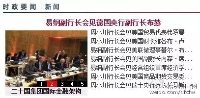 周小川周三分别会见国际货币基金组织总裁拉加德、瑞士央行行长托马斯·约旦、美国商品期货交易委员会主席蒂姆·马萨德、美国财长雅各布·卢、美国贸易代表弗罗曼五个重量级人物。不过并没有公开会谈详细内容。