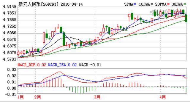 下面是新加坡元对人民币汇率走势,人民币在贬值。