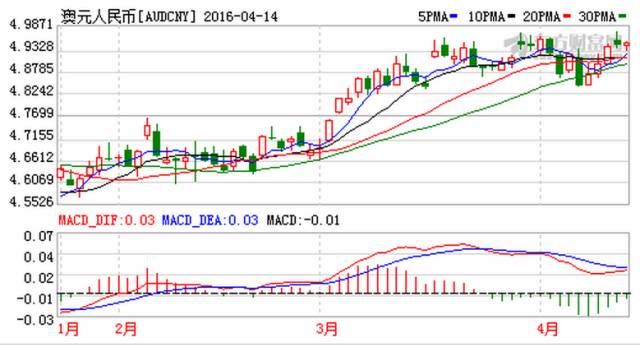 下面是澳元对人民币汇率走势,人民币在贬值。