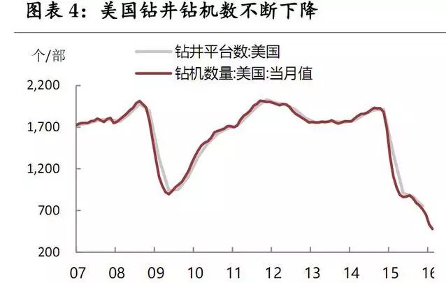 (因为40美元以下,生产页岩油不赚钱了,所以美国减产明显)