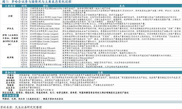 谁参加?谁重要?有18个国家参与此次多哈会议,但是伊朗、挪威、阿根廷、巴西并未参加,其中沙特、伊拉克、伊朗的表态是主旋律,其余小国伴奏几乎可忽略。从过去一年的供给增量来看,OPEC增加1.73百万桶/天至37.4百万桶/天,而增量中的95%由沙特与伊拉克贡献;伊朗由于解禁未来可有0.7百万桶/天的净增量空间,考虑全球供需差额为2.5百万桶/天,伊朗复产的意愿和节奏至关重要;俄罗斯目前产量已经是过去20年的高点,产量提升空间有限,考虑到其承诺也并不可信,比如2001年的减产协议违约,其态度并不十分重要。