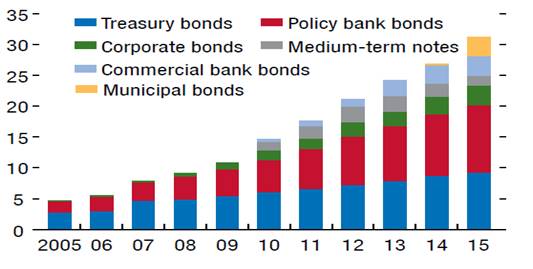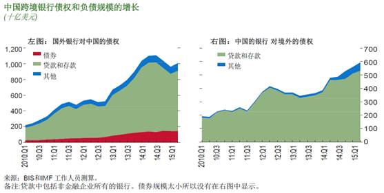 在过去五年中,跨境银行业务的增长引人注目,如果保持这样的增速,中国将成为全球主要的银行业中心。银行贷款是中国与世界其他地区建立金融联系的主要渠道。2010-2015年,中国企业获得的跨境银行贷款规模增长了五倍,超过1万亿美元(图4,左),并且中国的银行向境外投放的贷款规模增加了三倍,达到近6000亿美元(图4,右)。未来,随着更多的中国企业“走出去”,中国的银行业务很有可能会紧跟其脚步。