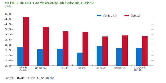图2 危机后中国工业部门对发达经济体股权溢出效应加强