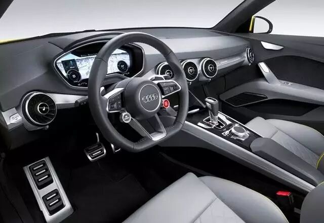 TT的内饰采用了大量的铝合金饰板,整个车室弥漫着金属美感。最值得一提的是,新车将信息娱乐系统与仪表盘整合在一起。