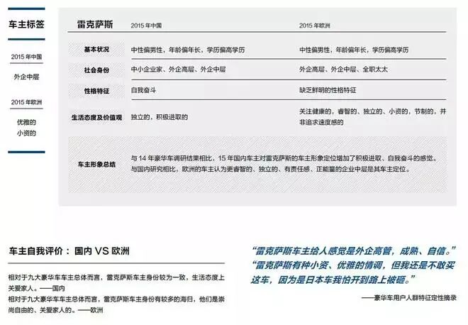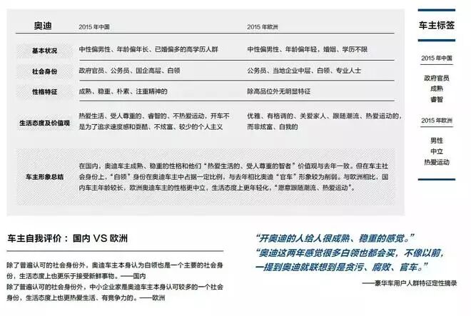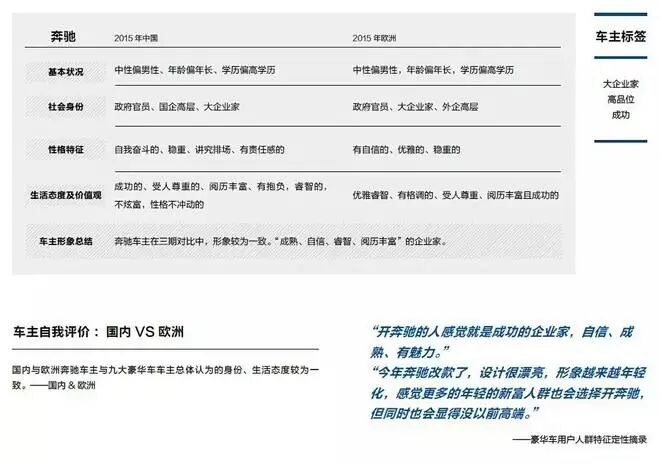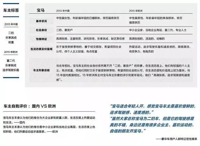报告试图展示豪华车车主特征,各大品牌车主形象、品牌形象的区别,以及中欧豪华车车主的特征和消费习惯差异。