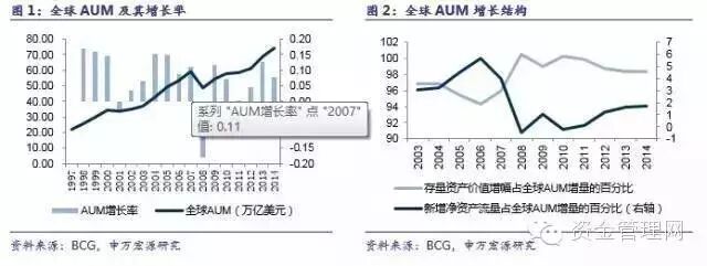 全球资产管理规模增长主要受存量资产价值上升推动