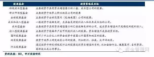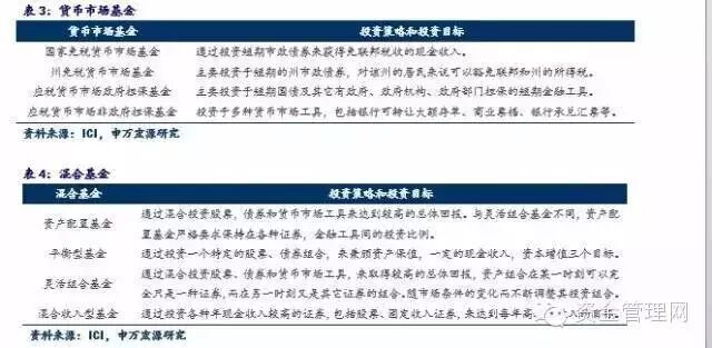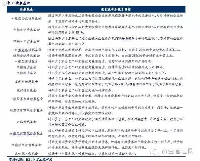 在第二层级的资产配置方面,传统资产管理产品主要包括股票基金、债券基金、货币市场基金和混合基金,我们将美国投资公司协会(ICI)对这些产品的介绍整理如下,中国的具体情况我们将在后面几篇专题报告中做深入研究,敬请关注!