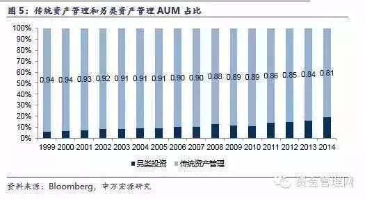 传统资产管理主导地位虽难改,但另类资产管理日受青睐。长期以来,传统资产管理(包括共同基金、养老基金和保险基金)AUM占比始终超过80%;但另类资产管理(包括对冲基金、私募股权基金、主权财富基金和交易所交易基金)AUM占比已由2002年的6%涨至近20%,这主要是由次贷危机后投资者风险偏好发生了较大变化,资产管理产品变得越来越复杂,创新趋势明显所致。