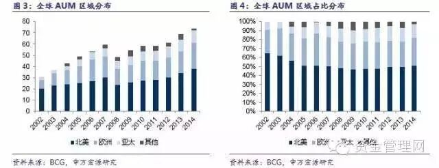 北美和欧洲的AUM规模居前