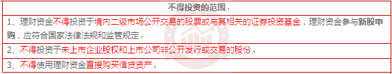 3、理财资金投资管理补充:不得使用理财资金直接购买信贷资产。