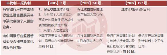商业银行开展个人理财业务实行审批制和报告制——(【2007】241商业银行发行保证收益性质的理财产品,实行报告制——[2009]172理财计划报告制)
