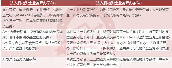 点评: 监管用意在于降低对低评级债券投资,对市场有一定负面影响。 1、按照银行的监管评级对投资债券的评级进行限制。监管机构主要格局各项运营和财务指标来对农村金融机构进行监管评级,而且评级越高的机构比例越少。按照该征求意见,评级在三级以下的机构,只能投资AAA评级信用债和利率债,也不能开展非保本理财业务。而此前监管机构并无这么严格的规定。因此有相当一部分农村金融机构在债券投资的评级上会受到限制。 2、对省联社的业务进行规范。征求意见稿中提出,省联社可慎重选择低风险业务品种进行投资(如利率债和AAA平价信用债),严禁投资信用风险高、流动性差的业务品种。言下之意是限制省联社投资AA+评级以下的信用债。这对于不少风格相对激进的省联社而言,也会构成较大限制。
