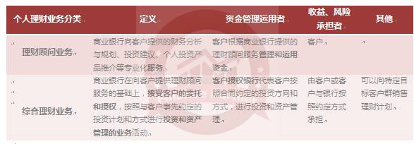A、个人理财业务,是指商业银行为个人客户提供的财务分析、财务规划、投资顾问、资产管理等专业化服务活动。按照管理运作方式不同,分为理财顾问服务和综合理财服务。