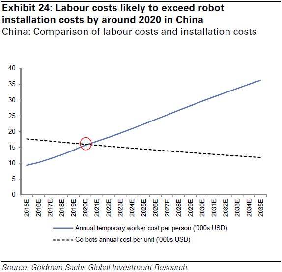 中国如今正经历飞速转变,这种转变在以前也曾发生在日本等发达国家身上,即工厂自动化程度的提高。面对不断上升的人工成本和固定成本,中国自动化的节奏之快引人瞩目。