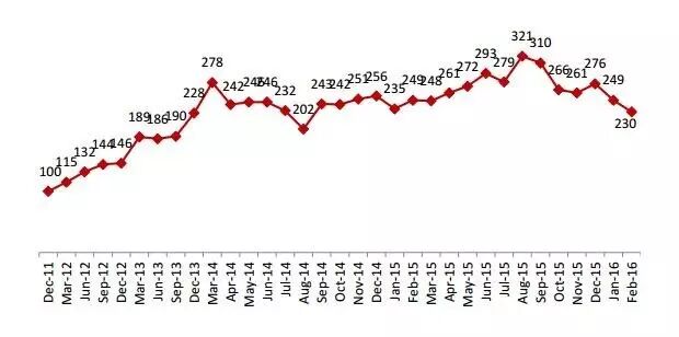 来源: 中国外汇网4月26日,中国银行发布2月跨境人民币指数(CRI),报告显示,2016年2月中国银行CRI指数为230点,较上月及去年同期下降19点。报告指出,