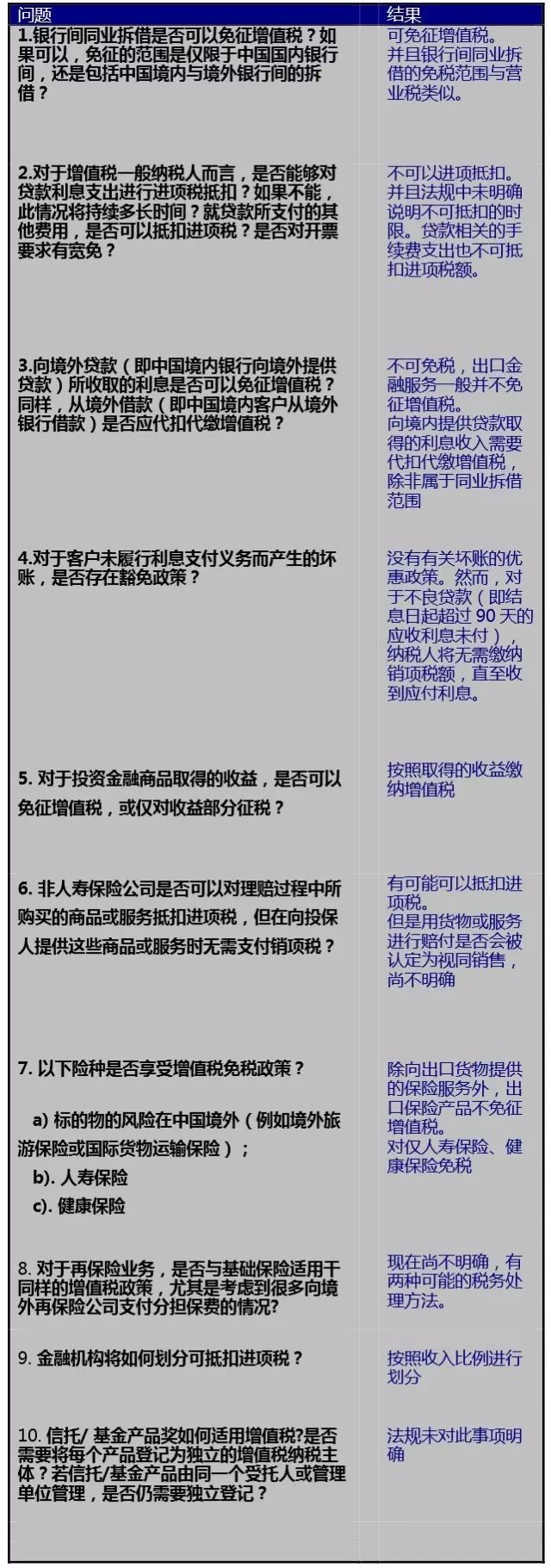 毕马威此前发布的中国税务快讯中提到了金融服务行业面临的10大行业问题,现在再次回顾此表,并且分析这些问题在新法规下是否得以解决(或仍然尚待解决)。
