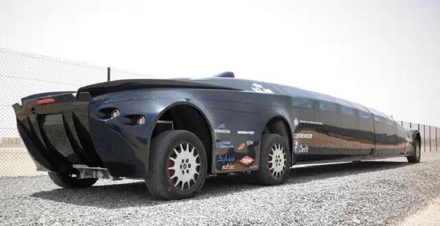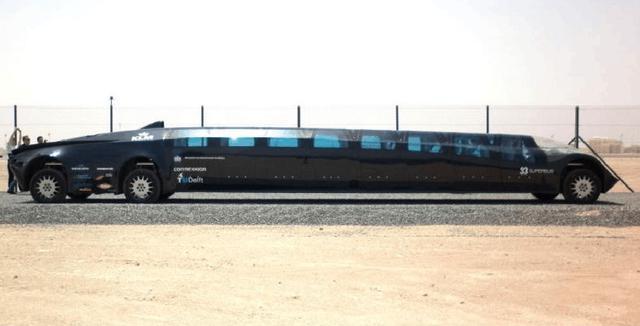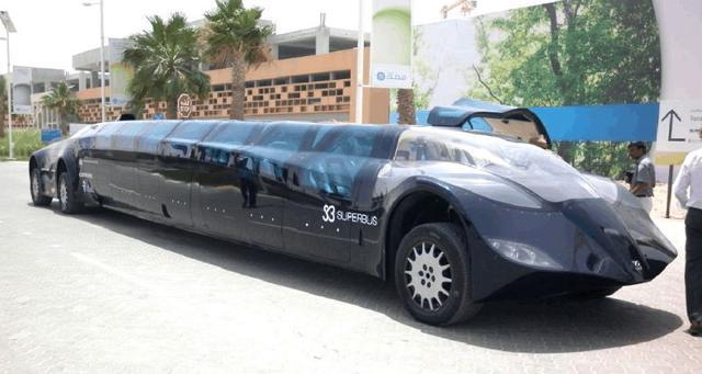 这款“超级巴士”可以为23名乘客提供超舒适、超豪华运程。其身长15米,宽2.5米,高1.65米,配备了16扇鸥翼式车门。